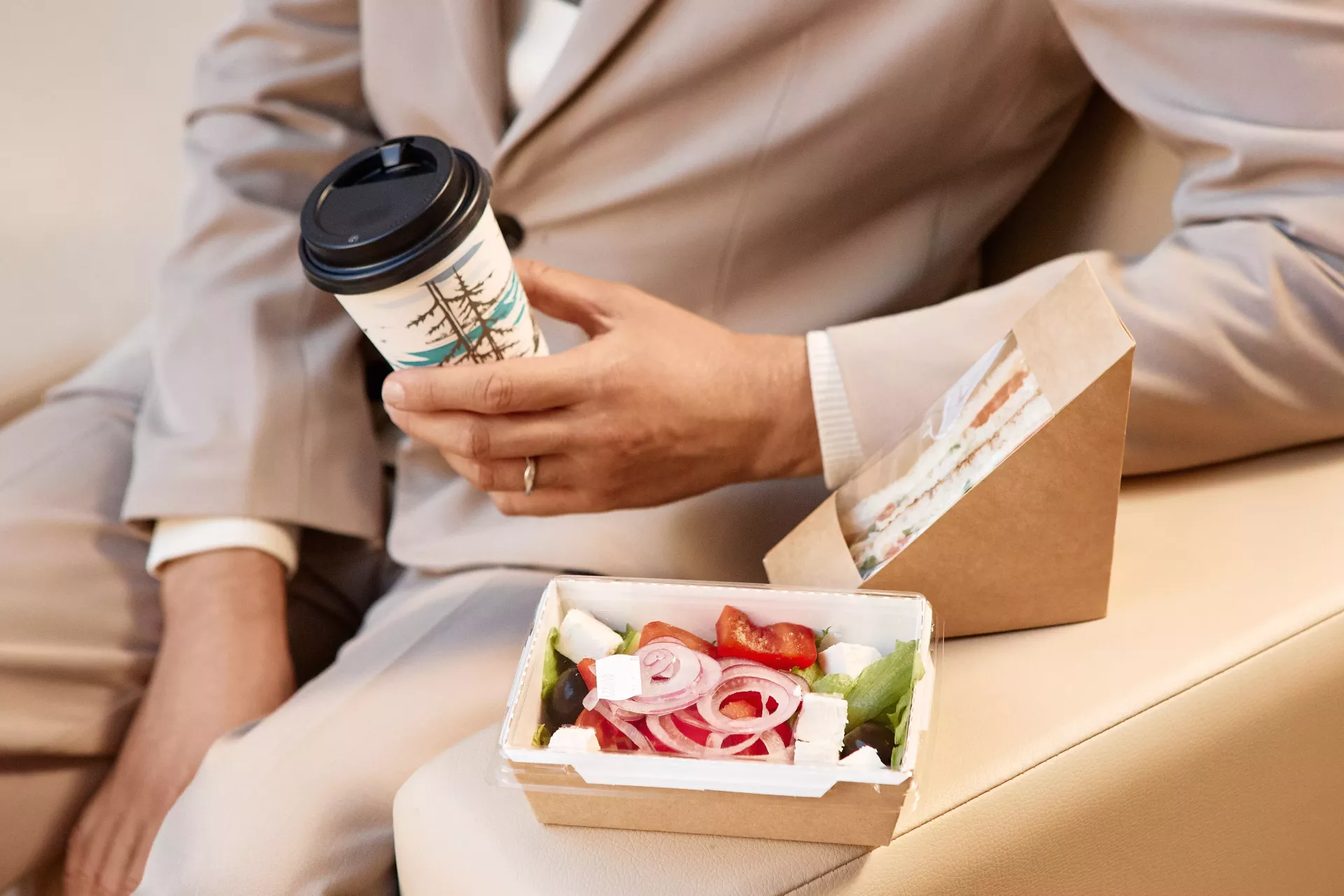 самообслуживания с готовыми свежими блюдами и горячим кофе работает