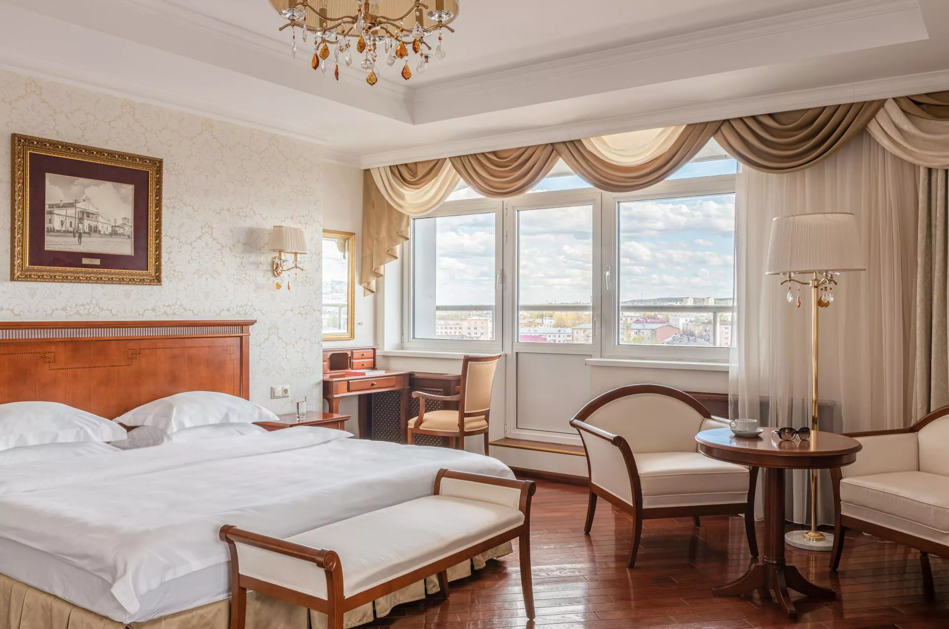 Вас приятно удивит продуманность каждой детали в номере Люкс. В практичной гостиной приятно отдохнуть на диване и посмотреть телевизор. В спальне можно воспользоваться письменным столом с удобным креслом или расслабиться на широкой двуспальной кровати после насыщенного дня.